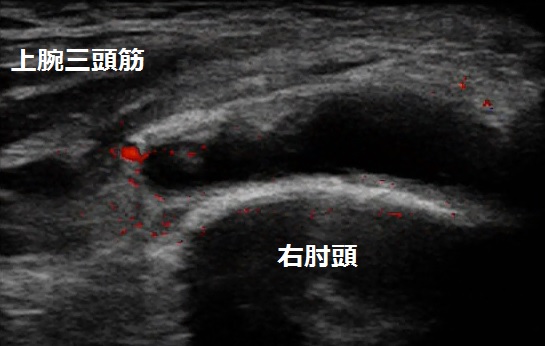 溜まっていることが認められました(画像、右肘頭上部の黒い部分)。